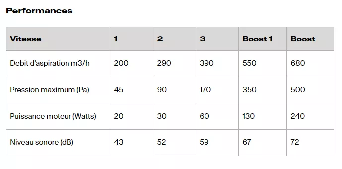 Débit int 680 m3/h / max 390 m3/h