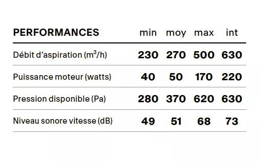 Niveau sonore mini 49 dB(A) / max 68 dB(A) / int 73 dB(A)