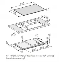 Dimensions de la découpe en mm (largeur) pour encastrement standard 750 mm - 780 mm