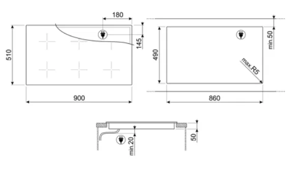 Arrière gauche - Induction - Multizone - 2.10 kW - Booster 2.50 kW - Double booster 3 kW - 22.0x18.0 cm