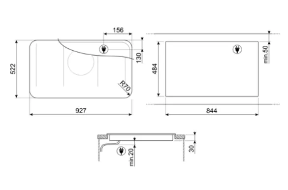 Avant central - Induction - simple - 2.60 kW - Booster 4.00 kW - Double booster 5.50 kW - 26.0x0.0 cm