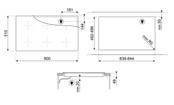 Arrière gauche - Induction - Multizone - 2.10 kW - Booster 2.50 kW - Double booster 3.00 kW - 22.0x18.0 cm