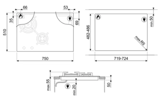 Arrière droit - Induction - Multizone - 2.10 kW - Booster 3.60 kW - 18.0x23.0 cm